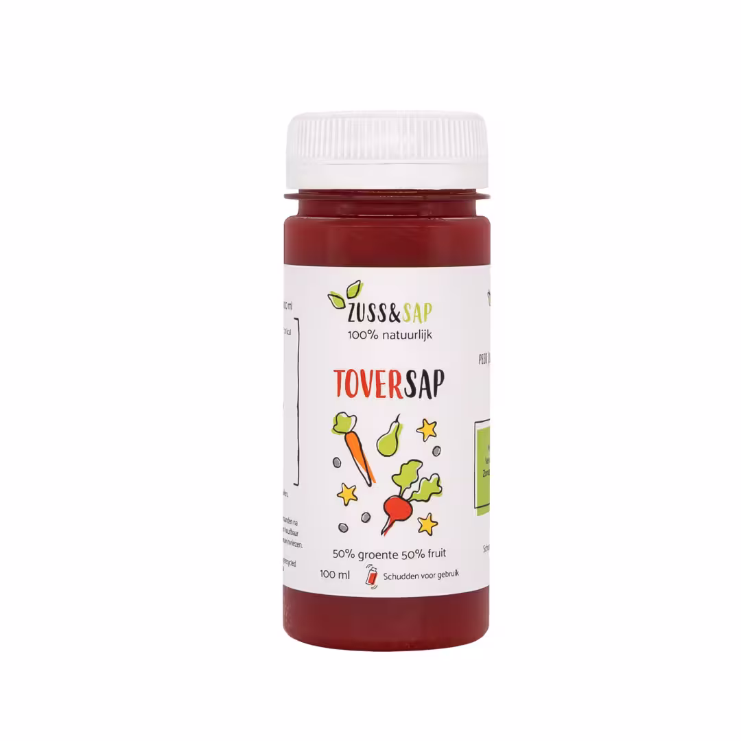 Rode Toversap van Zuss & Sap: een 100% natuurlijk kindersapje met biet en rode druiven. Magisch lekker én boordevol groenten en fruit!